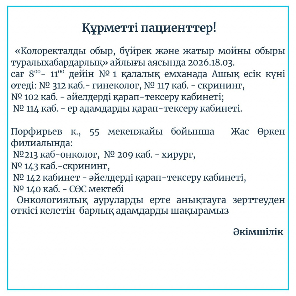 Құрметті пациенттер!