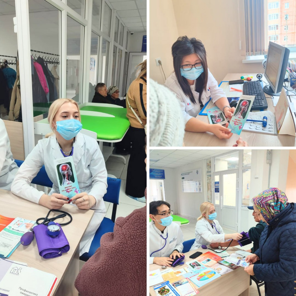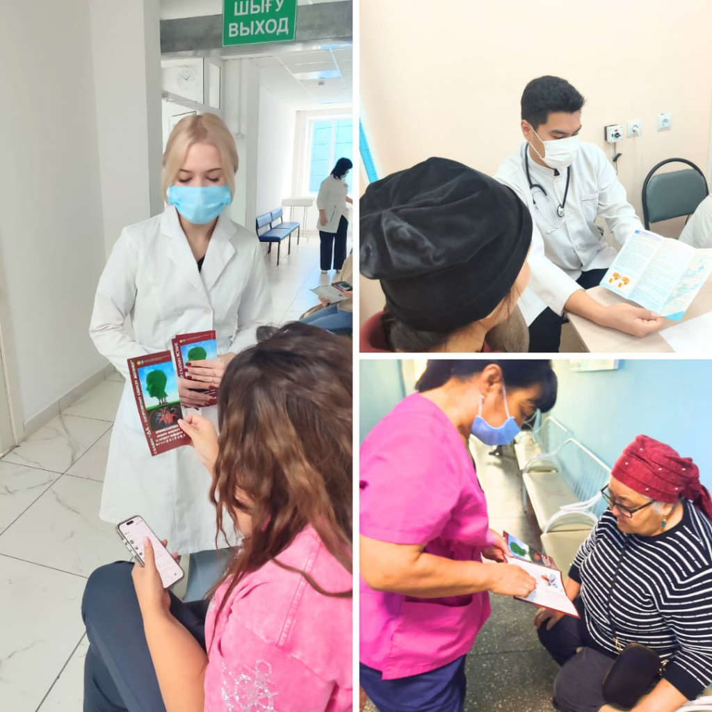 В рамках реализации Национальной программы, приуроченной к Всемирному Дню инсульта (29 октября) в КГП на ПХВ «Городская поликлиника №1» прошла акция, где каждый желающий мог измерить АД и получить консультацию по профилактике СД, АГ, первых признаках ОНМК, необходимости своевременного прохождения диспансеризации и профилактических медицинских осмотров, соблюдения принципов здорового образа жизни, привитие выбора активной жизненной позиции, отказа от употребления вредных продуктов питания, алкоголя и табака с целью уменьшения риска возникновения БСК, а также знаний первых признаков инсульта и порядка экстренных действий в случае их возникновения. Специалисты отделения профилактики и школы ЗОЖ, распространяли информационно-образовательный материал, призывая участников акции к здоровому образу жизни.