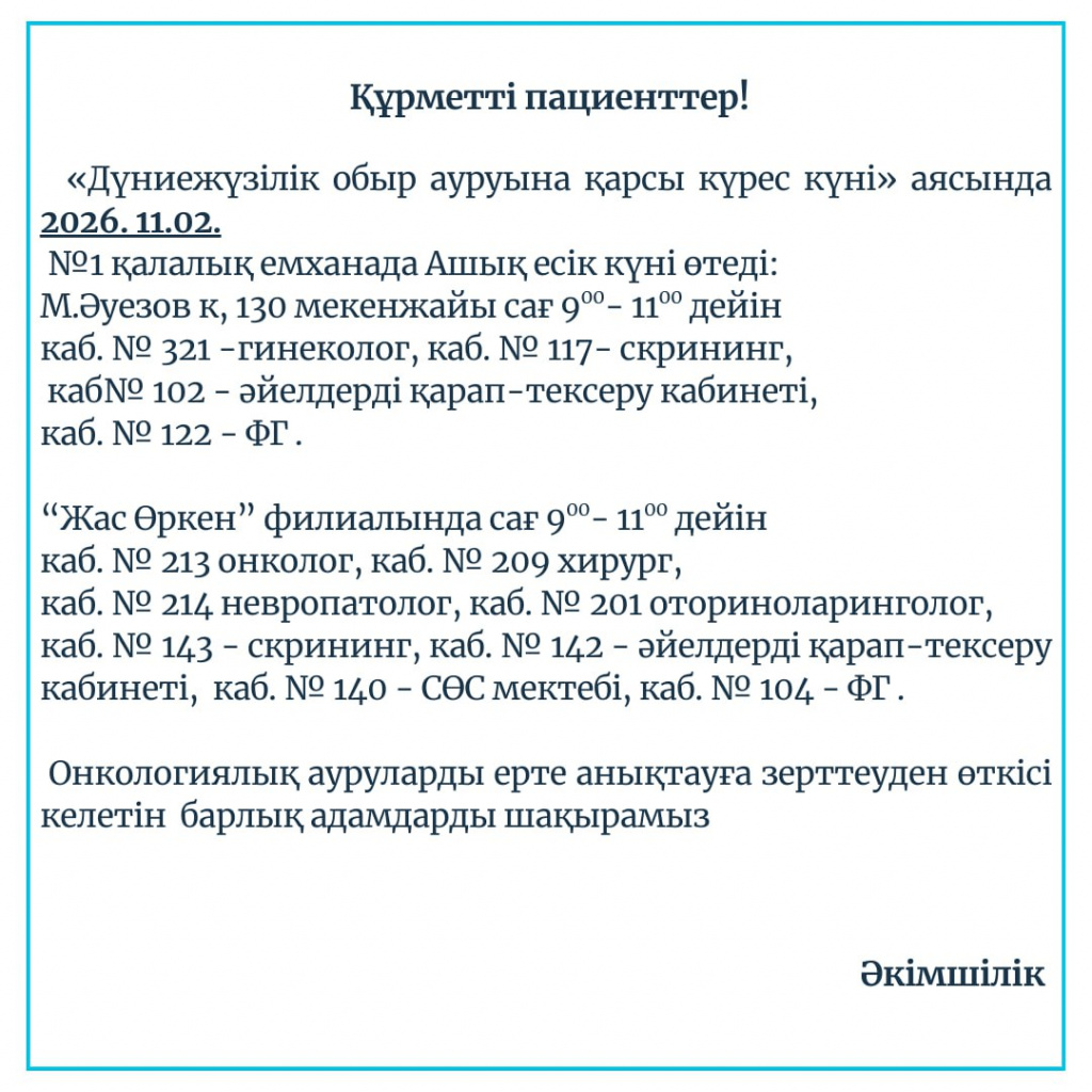 «№ 1 қалалық емхана» ШЖҚ КМК-нің